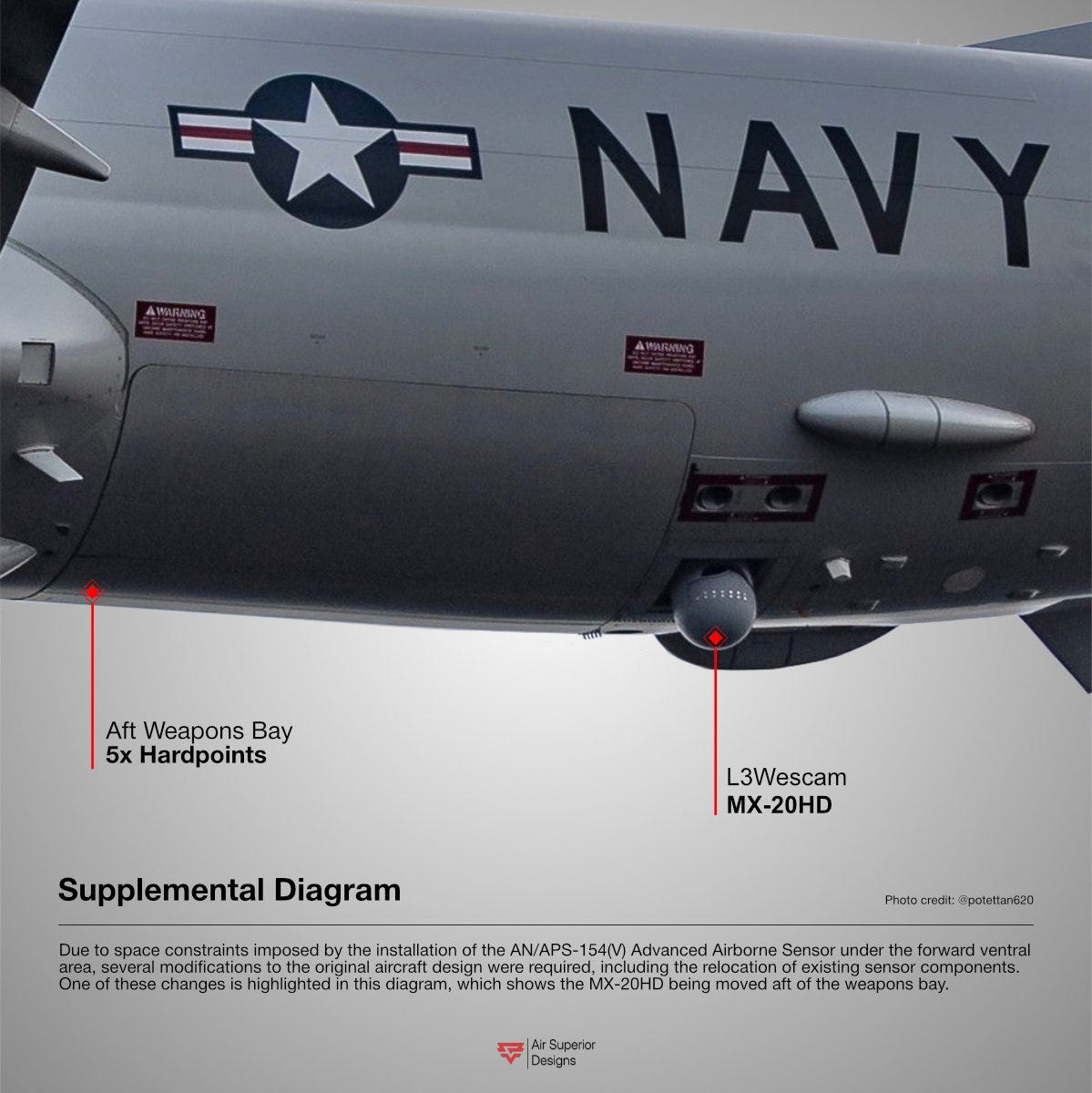Amplasarea sistemului de supraveghere optoelectronică Wescam MX-20 pe avionul P-8A. Sursa: AirSuperior via X