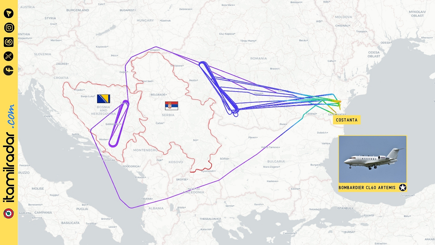 Artemis nu vânează pentru prima oară deasupra Mării Negre, exemplarul N159L (callsign BRIO66) fiind reperat aici de mai multe ori pe parcursul anului 2025 (ex: 4 iulie, 16 august, 21 decembrie). Același avion apare uneori în alte zone fierbinți, de exemplu în vecinătatea Libiei (11 octombrie și 6 noiembrie 2025).