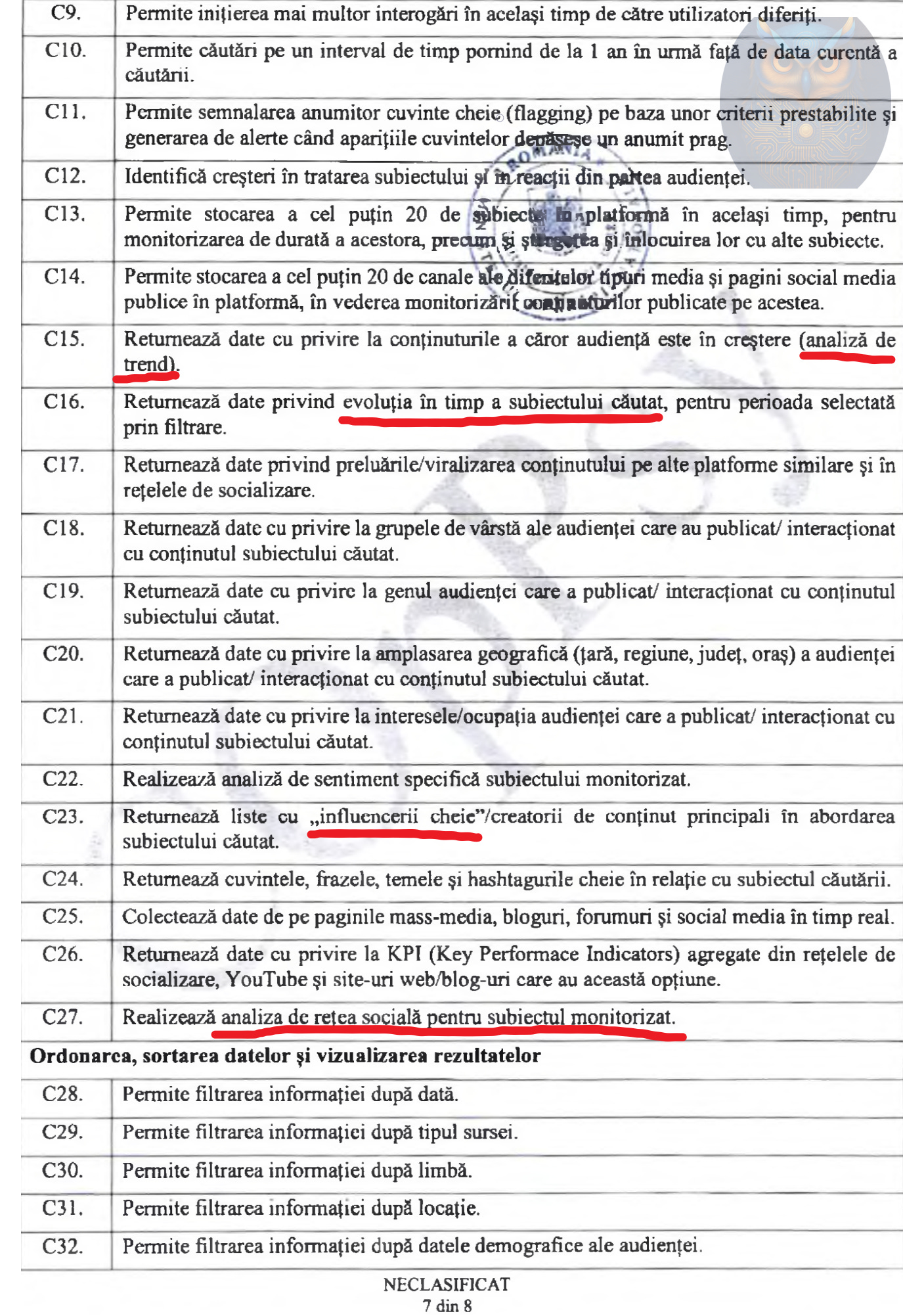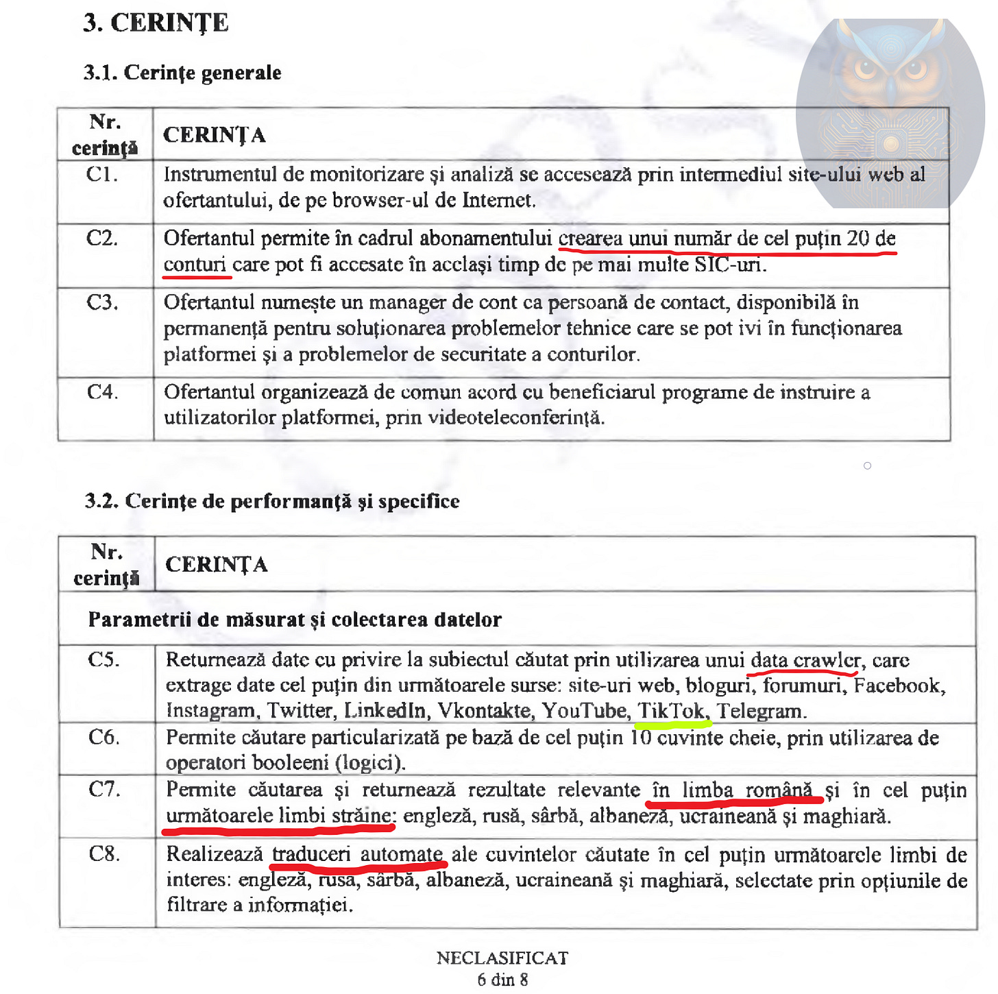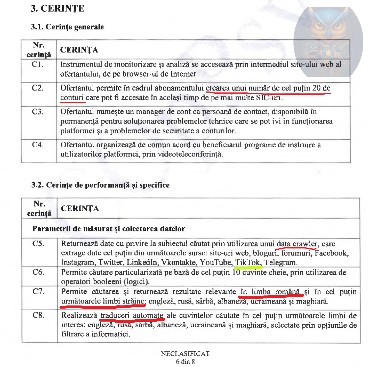 Nu era menționată denumirea produsului achiziționat dar specificațiile din caietul de sarcini (neclasificat) sunt destul de sugestive, motiv pentru care prezentăm un extras.